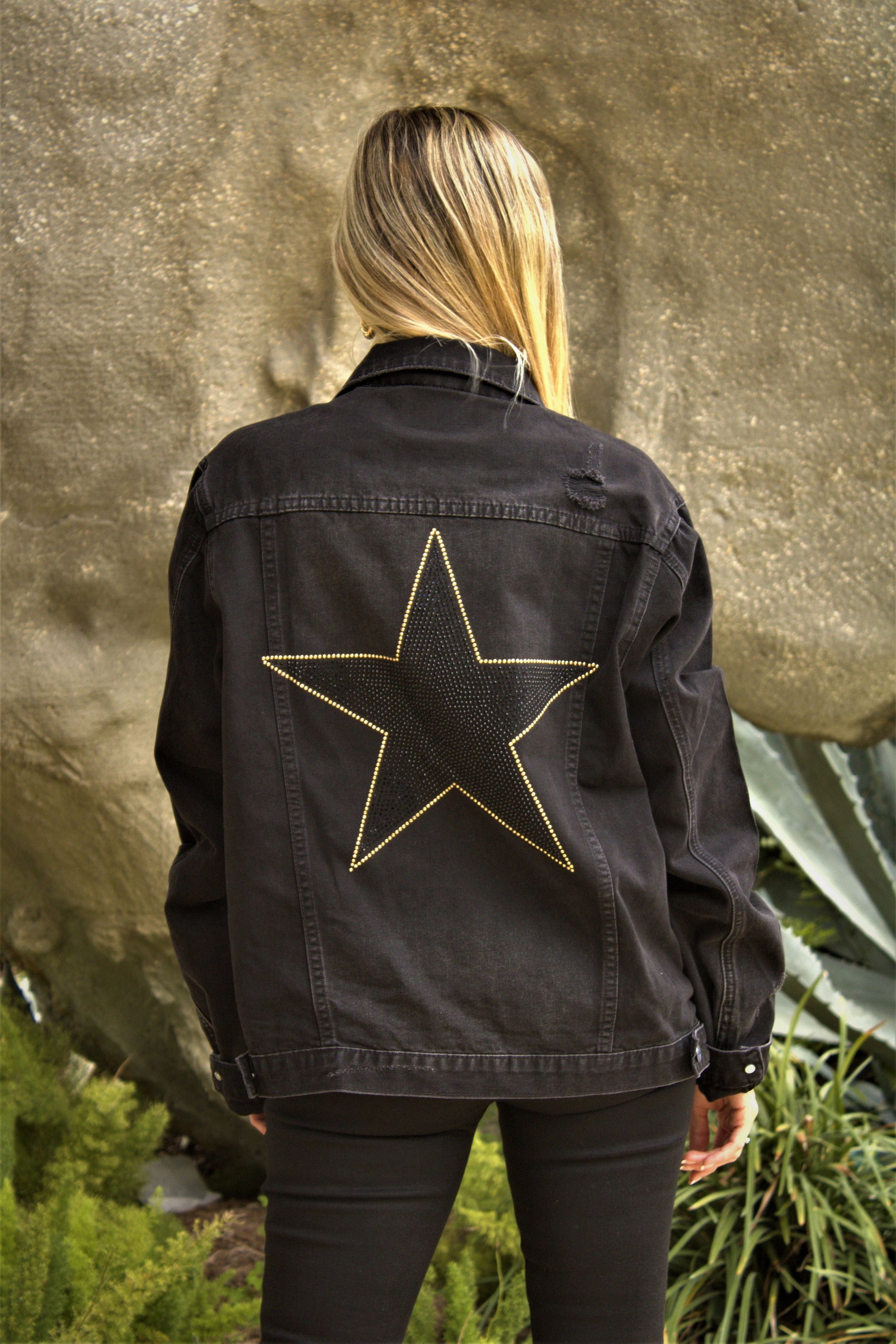Jacket, Denim, Black Oversized, Black and Gold Star