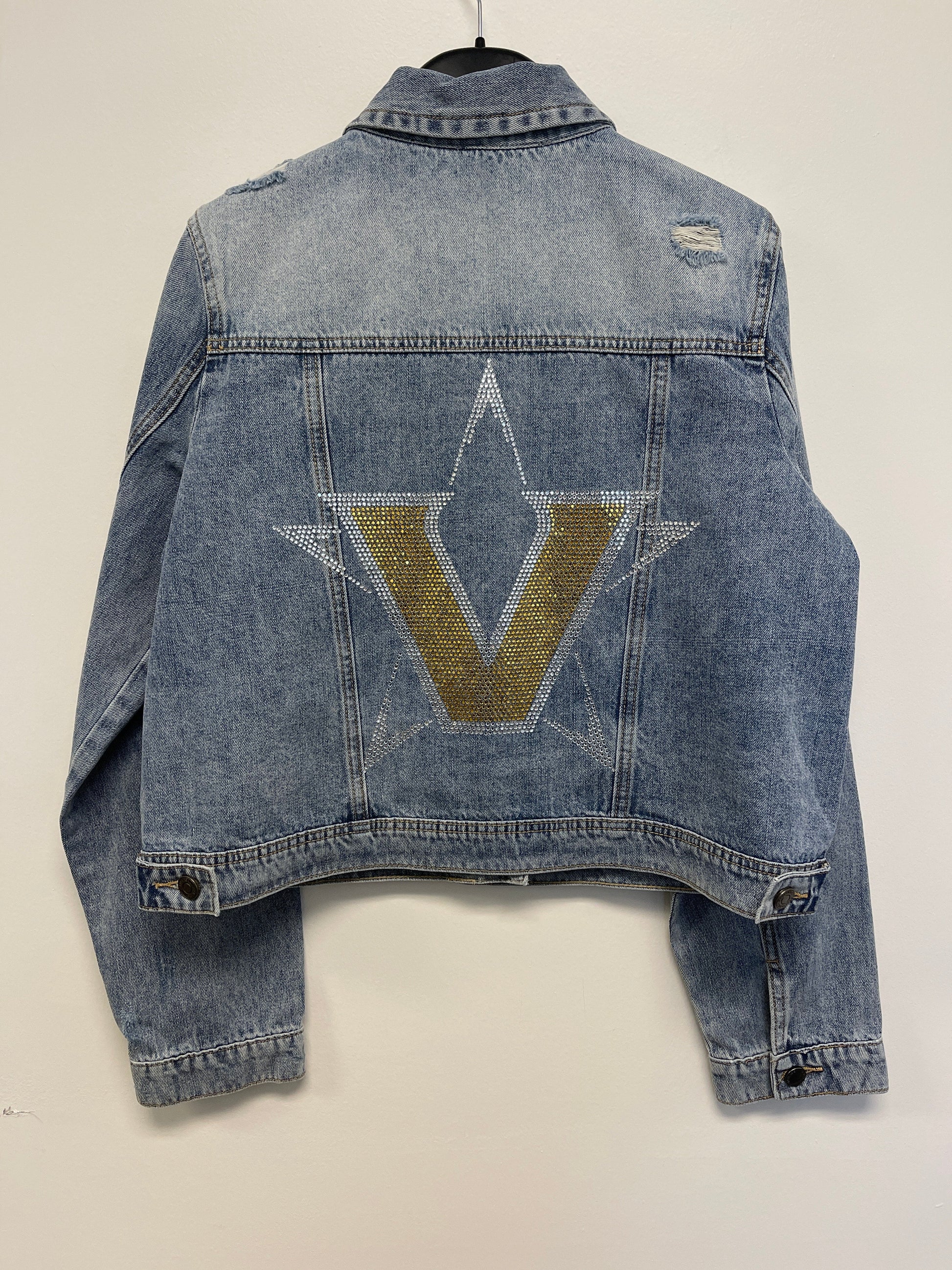 Show your team pride in style with our Vanderbilt Vandy Star Denim Jacket. This lightly distressed jacket with a relaxed fit is made of high-quality denim and features our beautiful crystal design. The perfect way to show your team spirit on gameday!