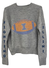 Stay cozy and stylish with this lightweight knit crewneck sweater. Featuring our crystal licensed University of Illinois football design, this piece is the perfect fit for any wardrobe. Show off your unique style with this gorgeous sweater.