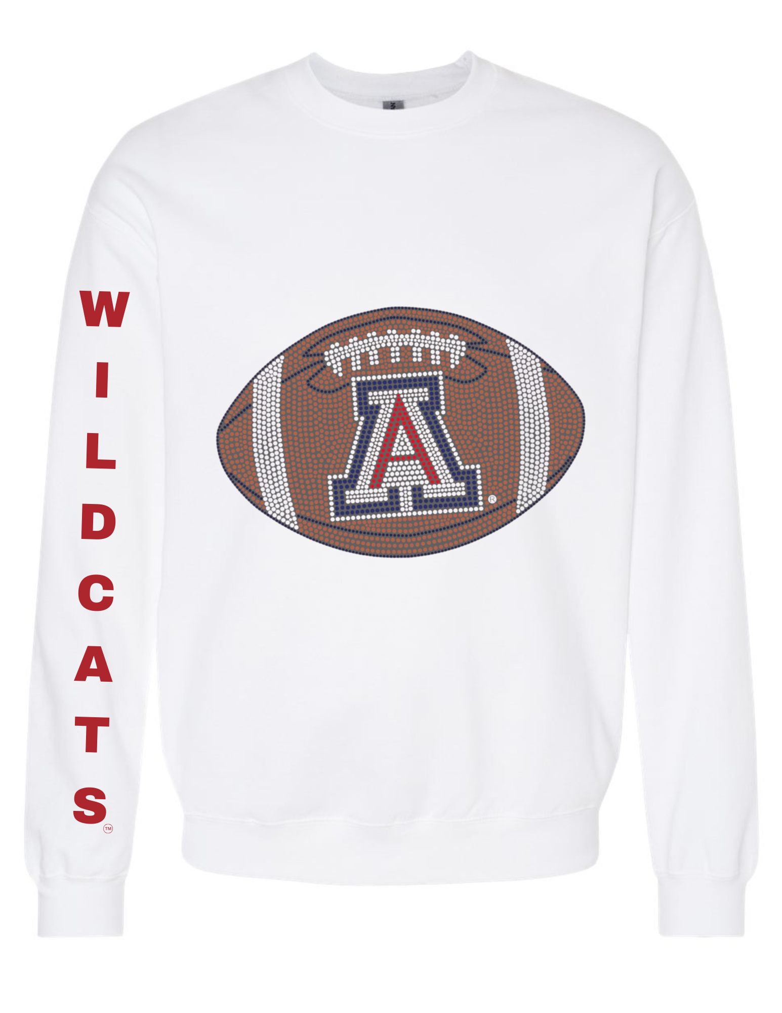 You don't have to do anything to break in this crewneck sweatshirt for game day! Featuring our chic crystal University of Arizona football design, you are sure to look just as cute as you are comfy! This sweatshirt will be the perfect addition to your game day wardrobe.